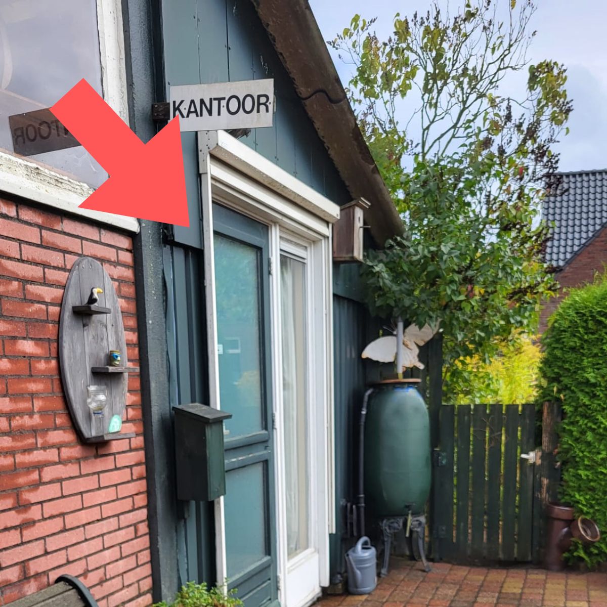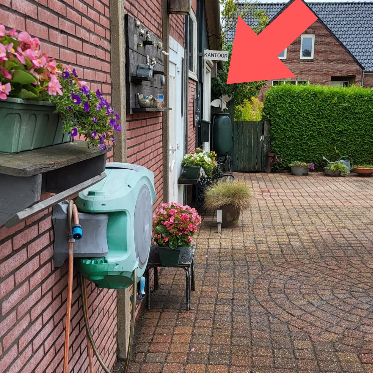Op de binnenplaats is de achterste deur aan de linkerzijde de ingang van mijn praktijkruimte.